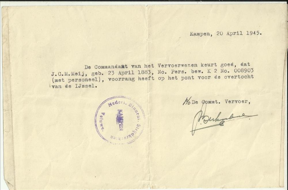 Vergunning van de Commandant van het Vervoerswezen v...