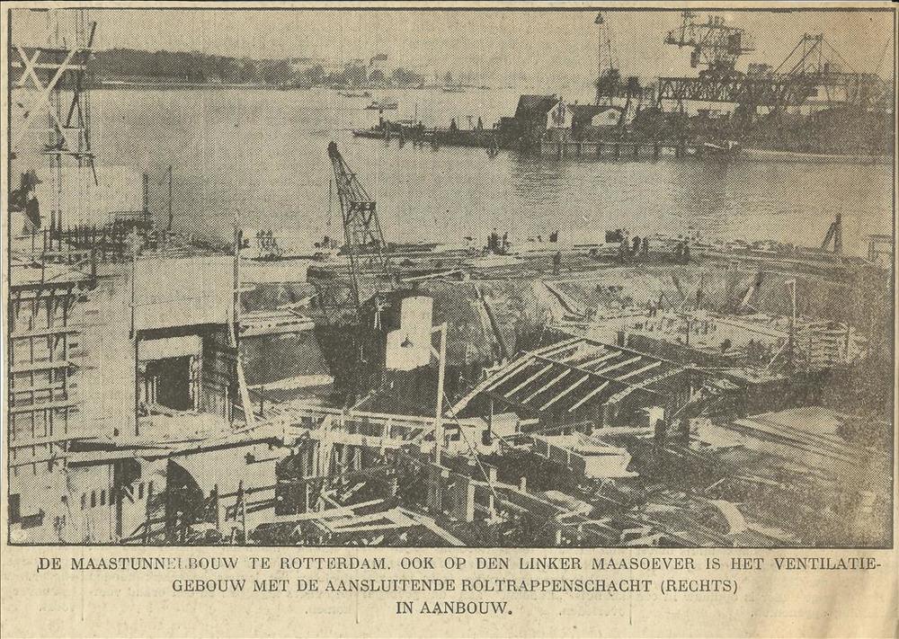 De Maastunnelbouw te Rotterdam. Ook op den linker Ma...