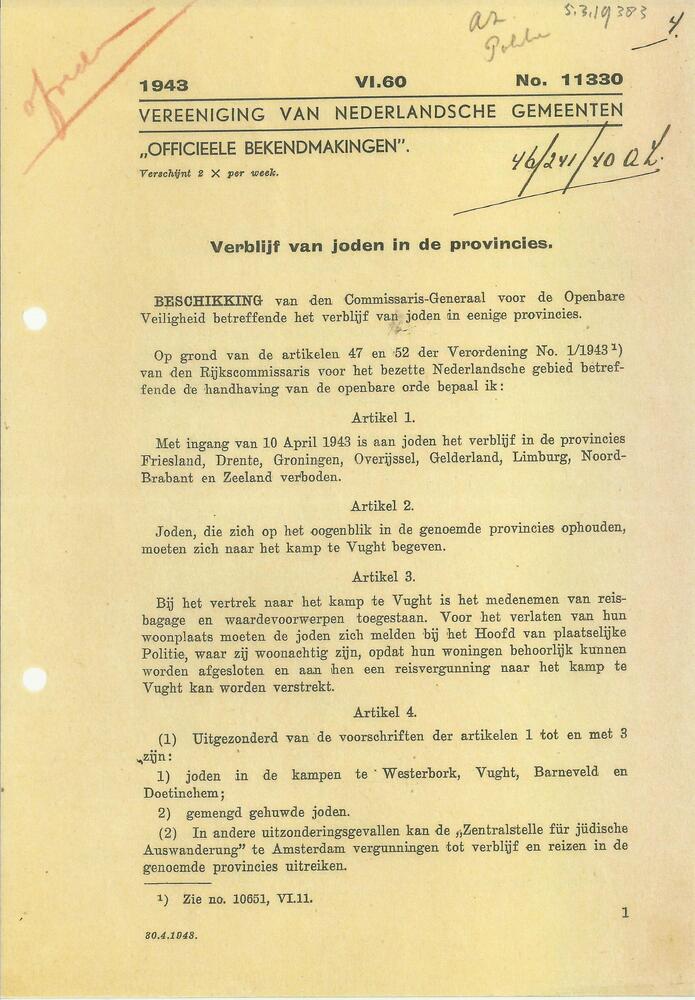 Officieele bekendmaking over verblijf van joden in d...