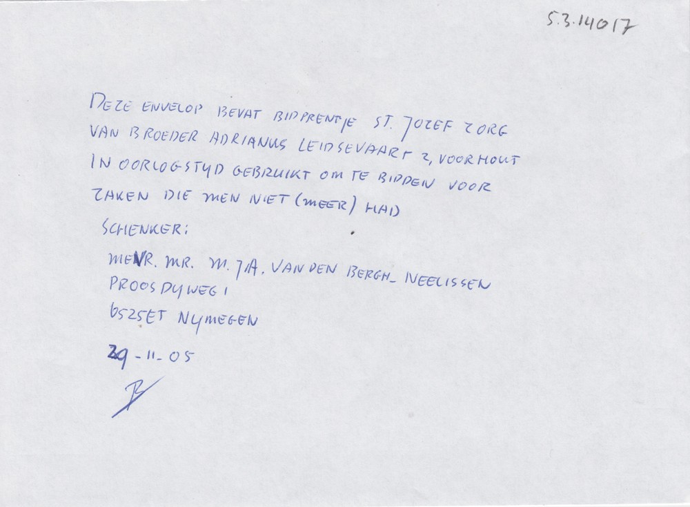 bidprentje "St. Jozef zorg"