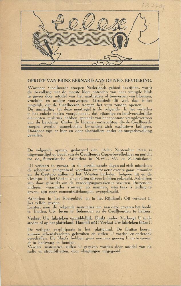 Telex, Pamflet: "Oproep van Prins Bernhard aan de Ne...