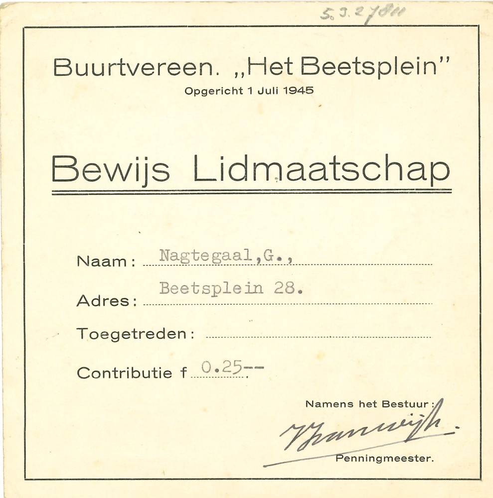 bewijs van lidmaatschap - Buurtvereen. Het Beetsplei...