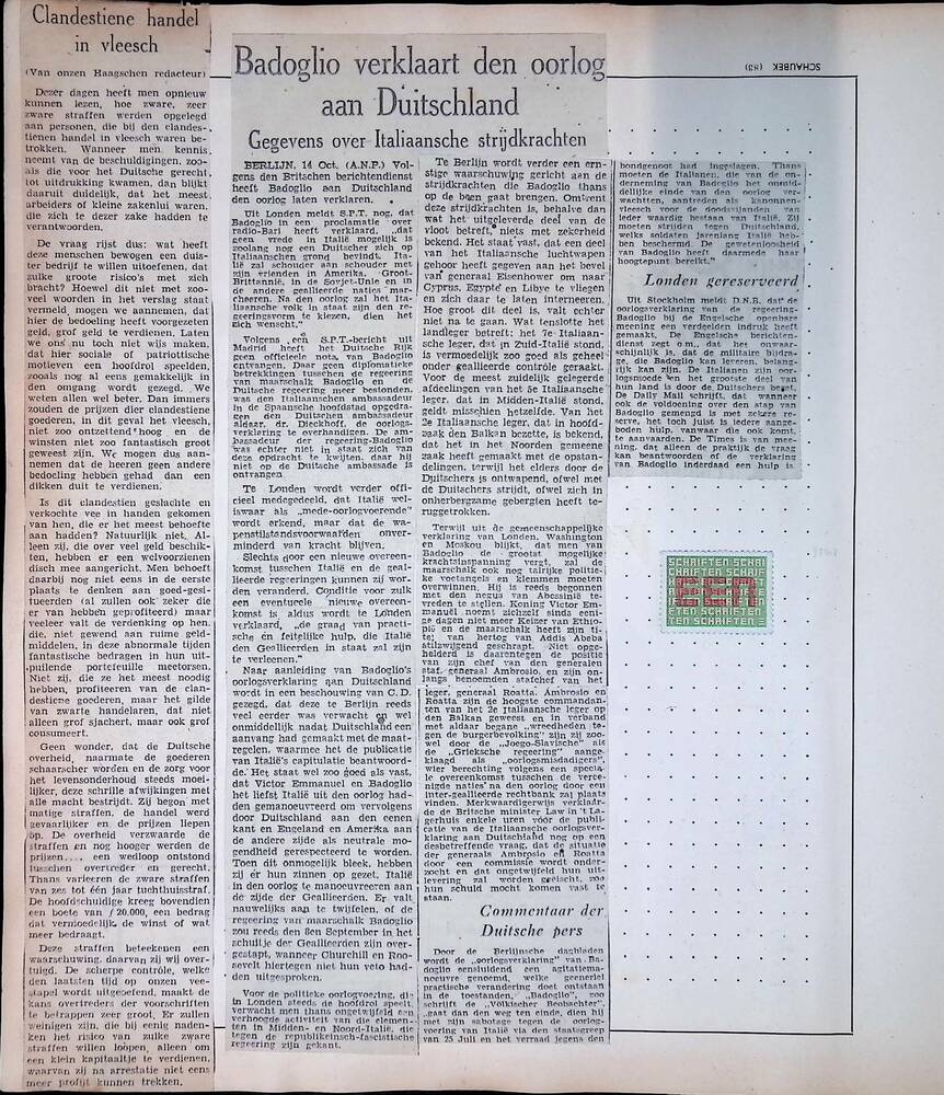Een aantal krantenknipsels uit de oorlogsperiode 194...
