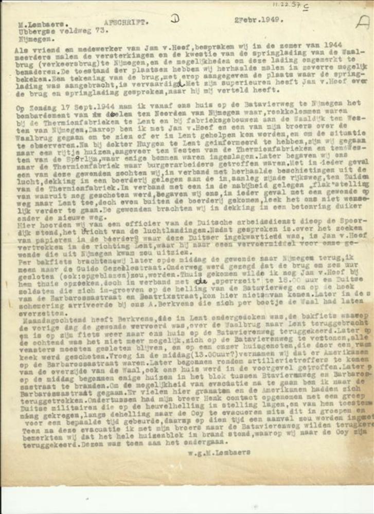 Afschrift brief M. Lombaers, 2 februari 1949, 3 maal