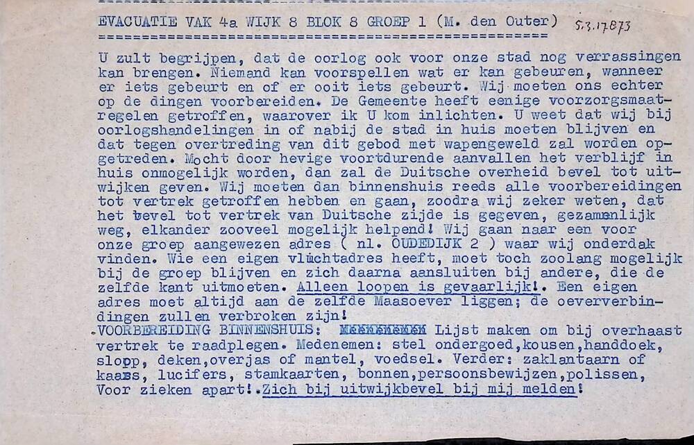 Doorslag van Evacuatie vak 4a wijk 8, blok 8 groep 1...