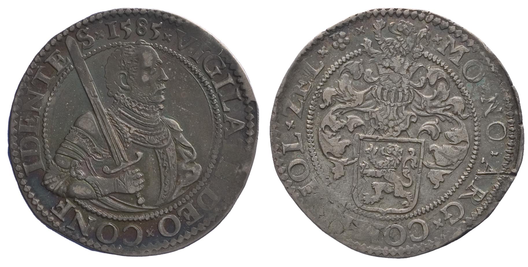 1585, halve rijksdaalder met gehelmd wapen