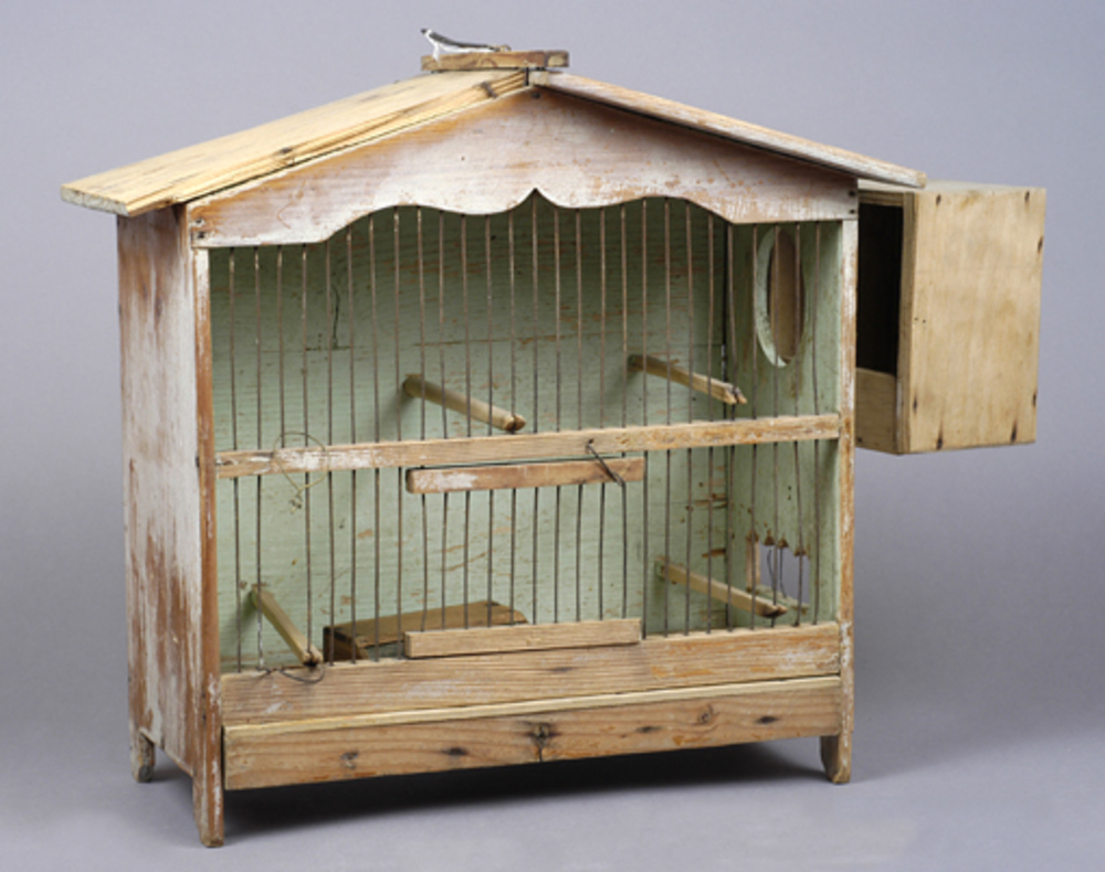 vogelkooi van hout met broedhokje, ca. 1930