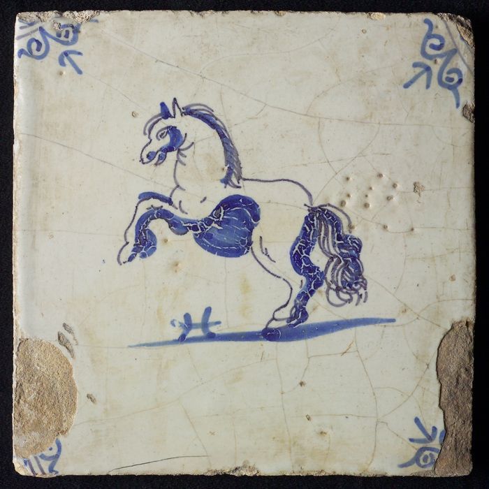 Dierentegel, steigerend paard, hoekmotief ossenkop