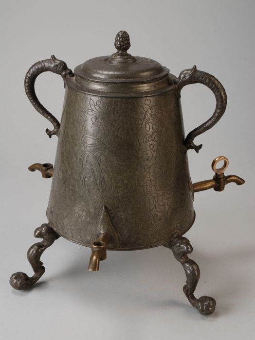 Conische kraantjeskan op hoge poten, gegraveerd met ...