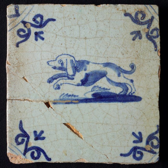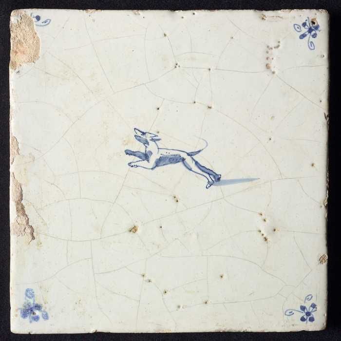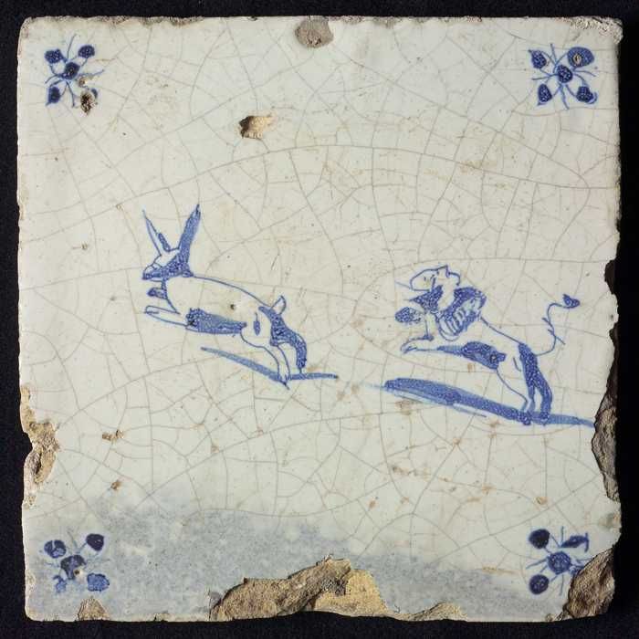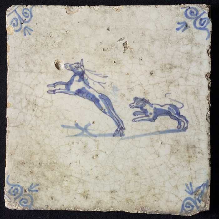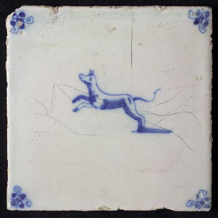 Dierentegel, springende hond en hert, hoekmotief oss...