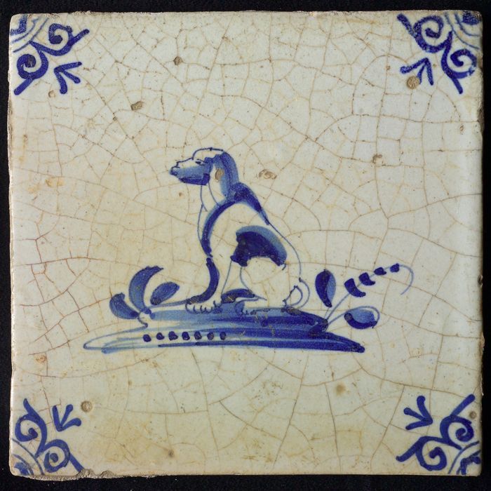 Dierentegel, zittende hond, zonder hoekmotief