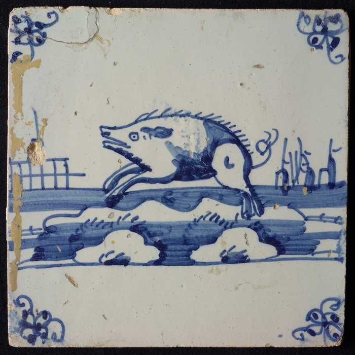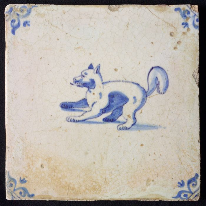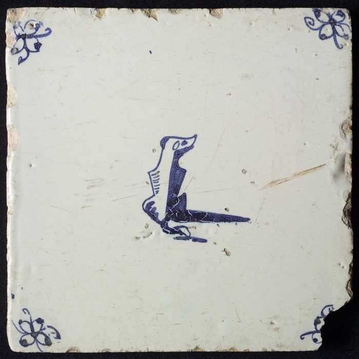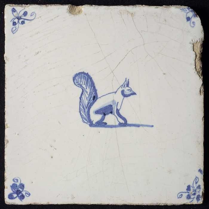 Dierentegel, springende vos en vogel, hoekmotief oss...