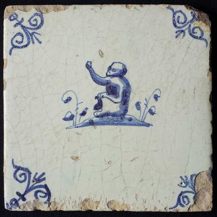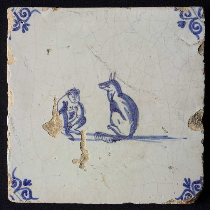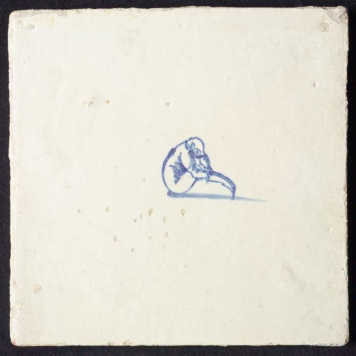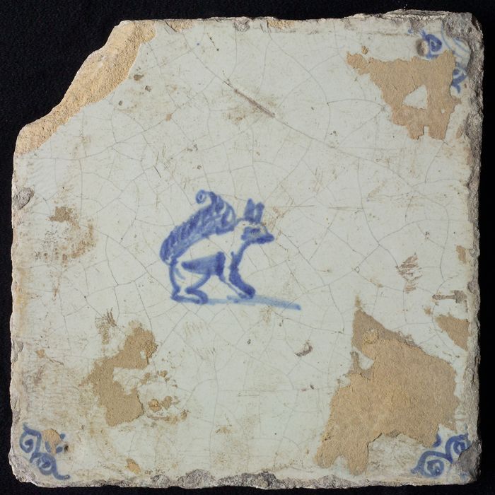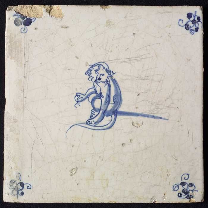 Dierentegel, zittende aap met planten, hoekmotief ge...