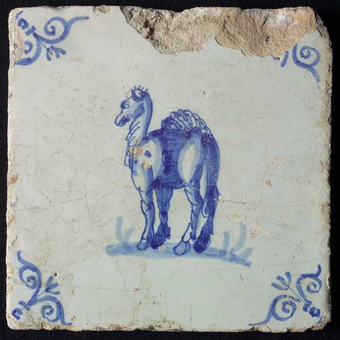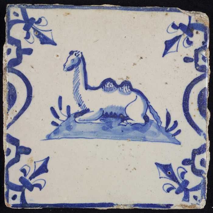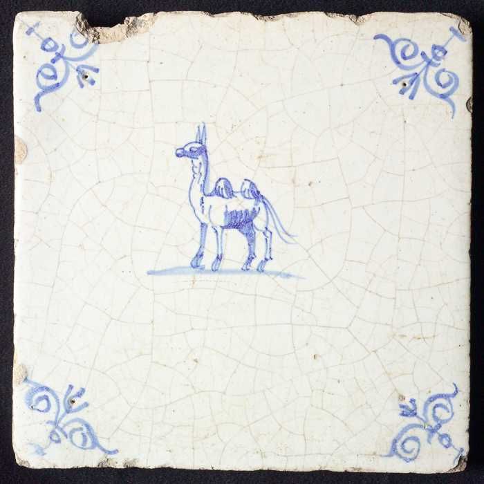 Dierentegel, staande kameel, hoekmotief gesteelde os...
