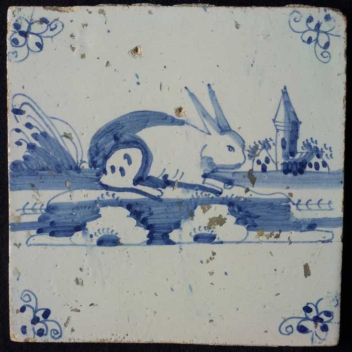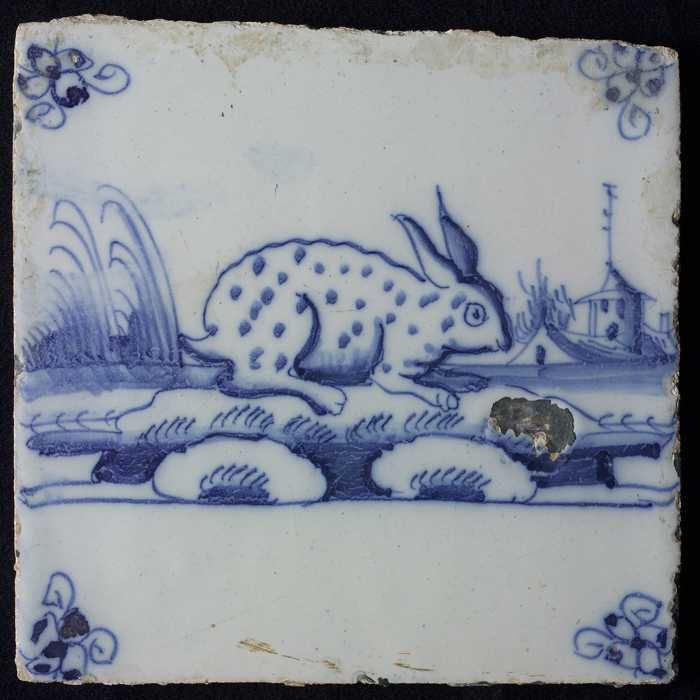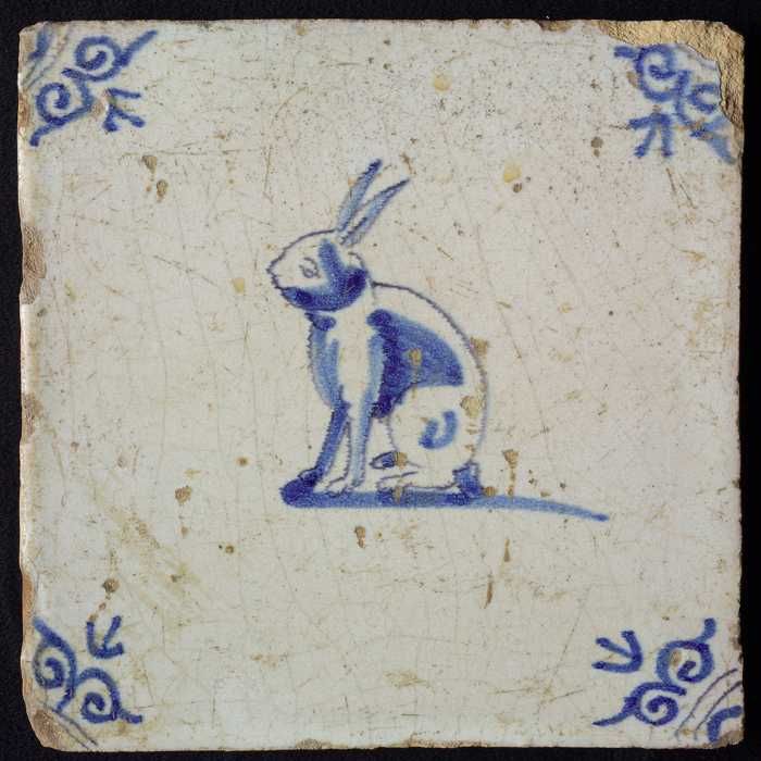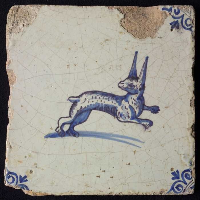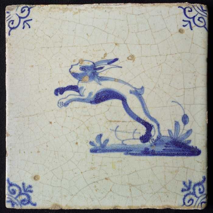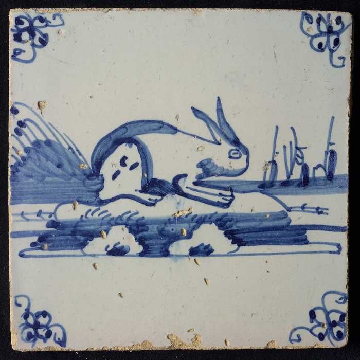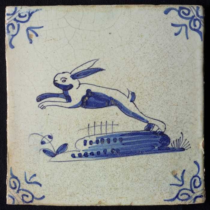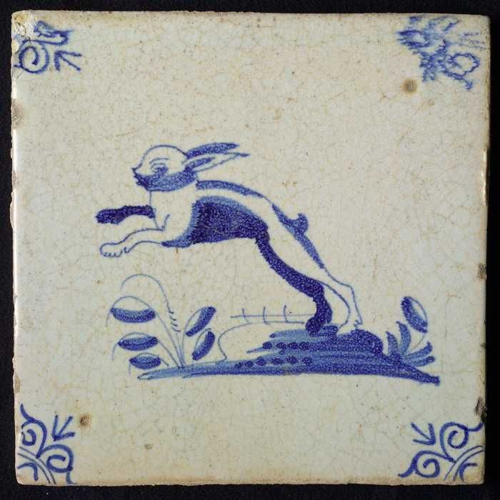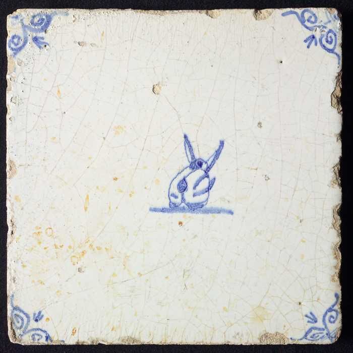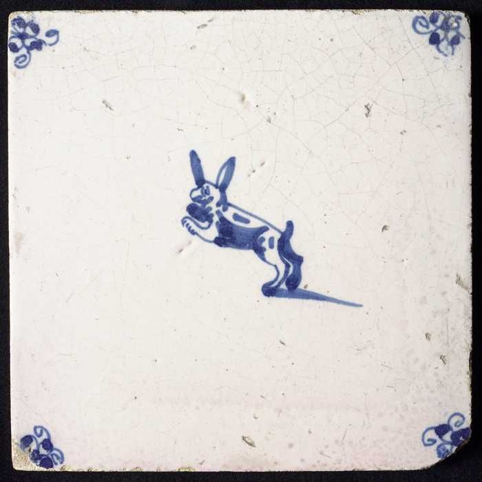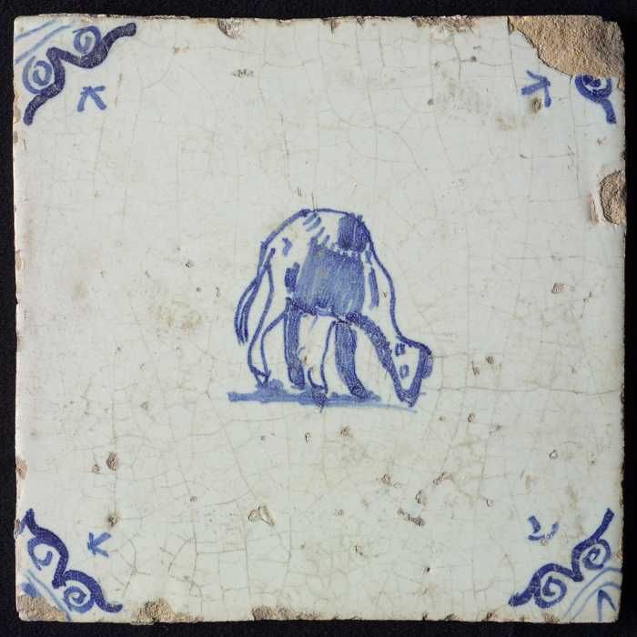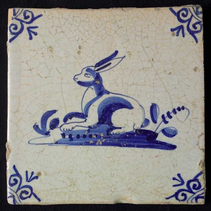 Dierentegel, liggende haas, hoekmotief ossenkop