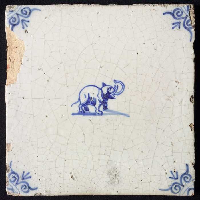 Dierentegel, staande olifant, hoekmotief spin