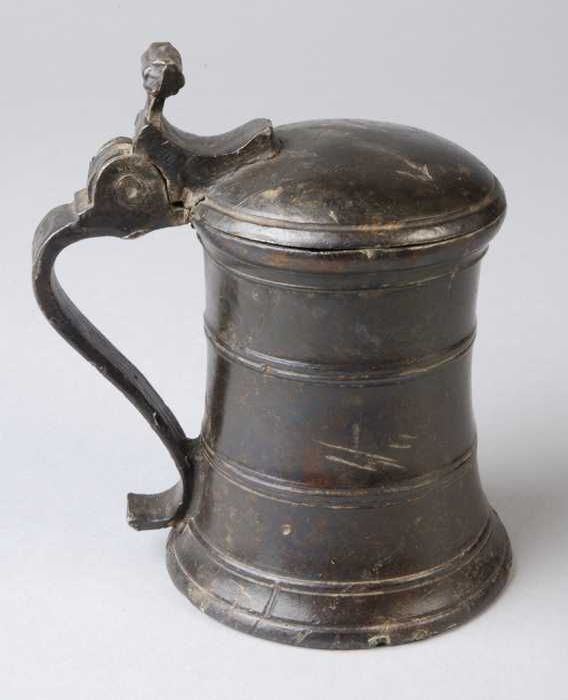 Tinnen kan met peervormig lichaam, vraagtekenvormig ...