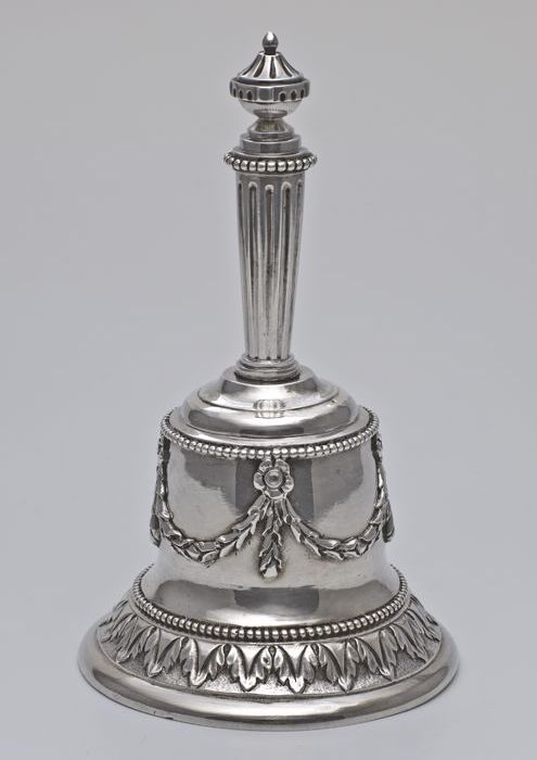 Klokvormige, zilveren tafelbel met klepel, gedecoree...