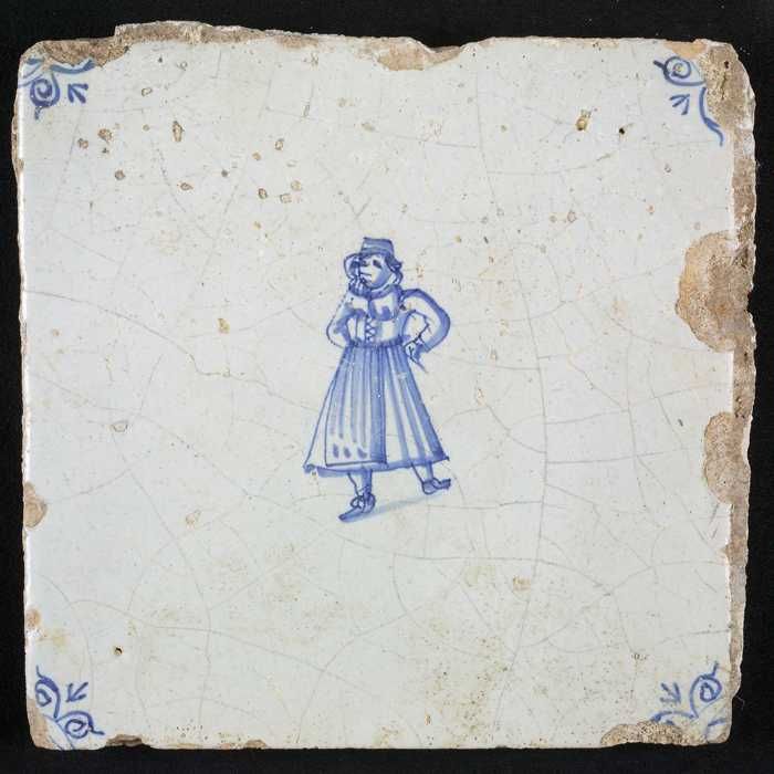 Figuurtegel, blauw, mogelijk een marktkoopvrouw (?),...