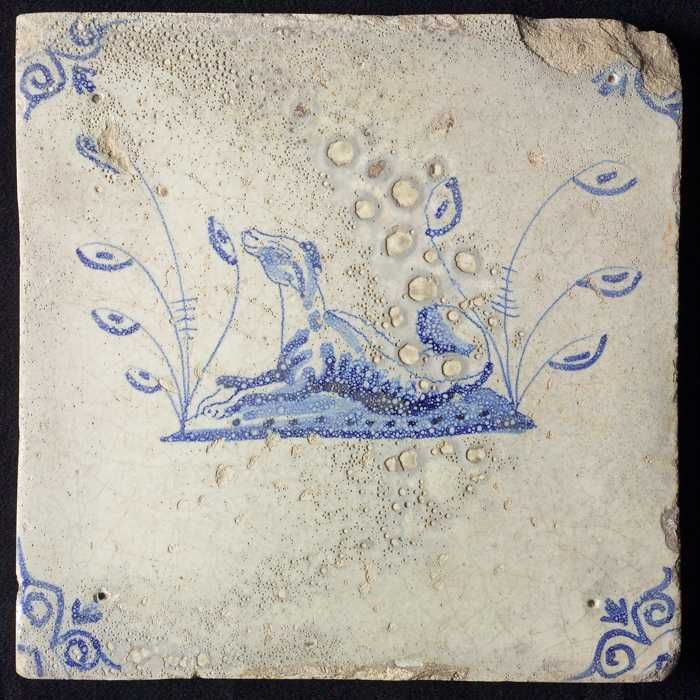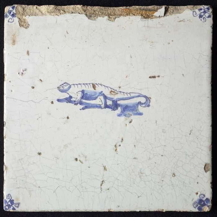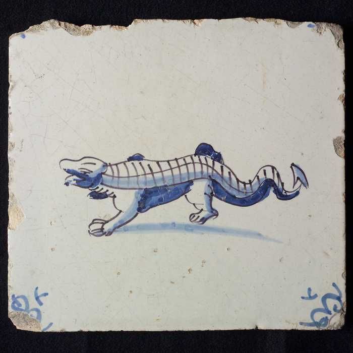 Dierentegel, lopende krokodil, hoekmotief ossenkop