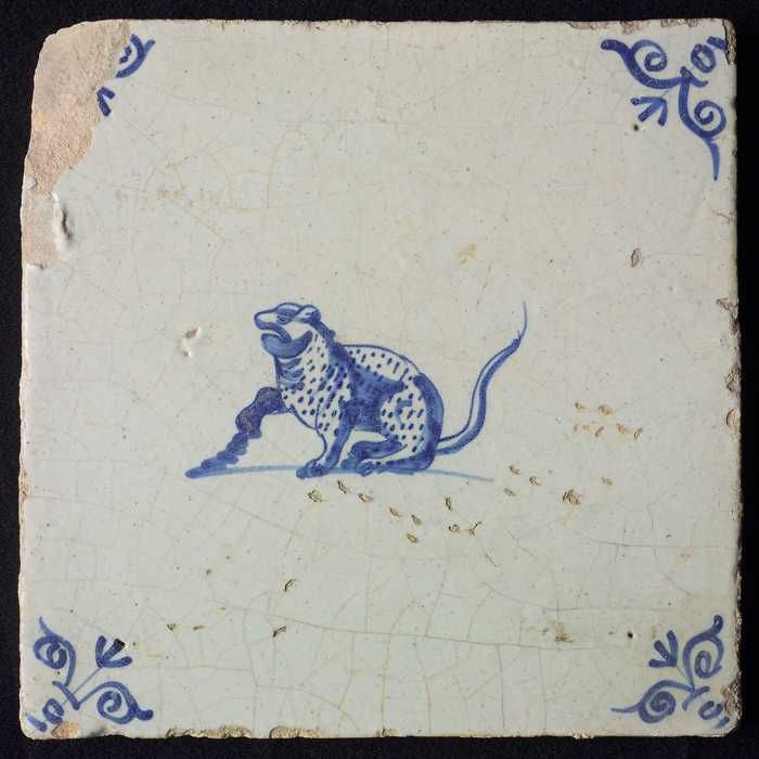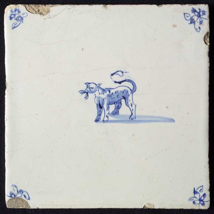 Dierentegel, zittende panter, hoekmotief gesteelde o...