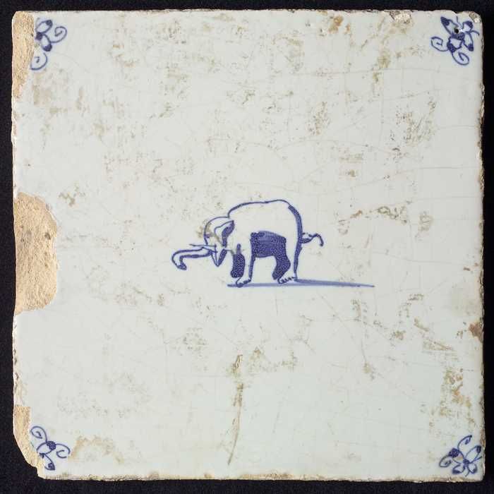 Dierentegel, staande olifant, hoekmotief ossenkop