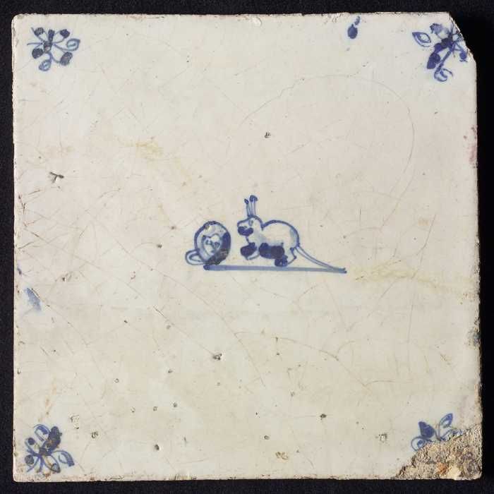 Dierentegel, rat of muis, hoekmotief spin
