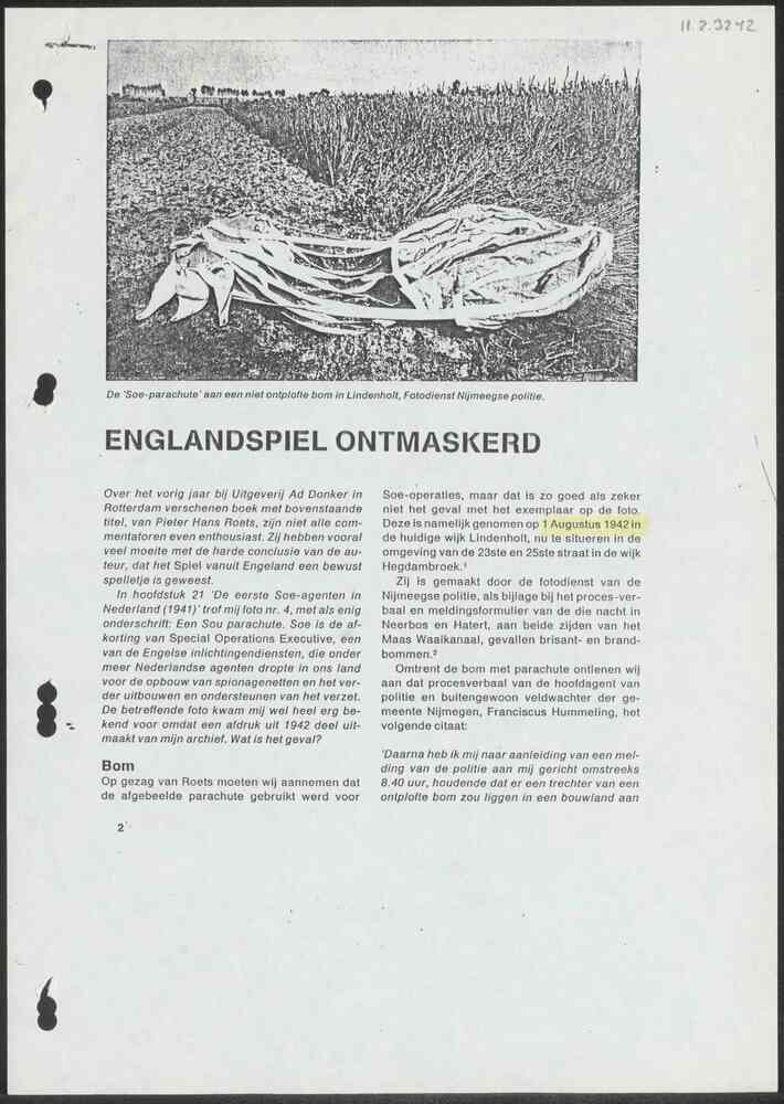 Artikel uit een boek, onderwerp "Englandspiel ontmas...