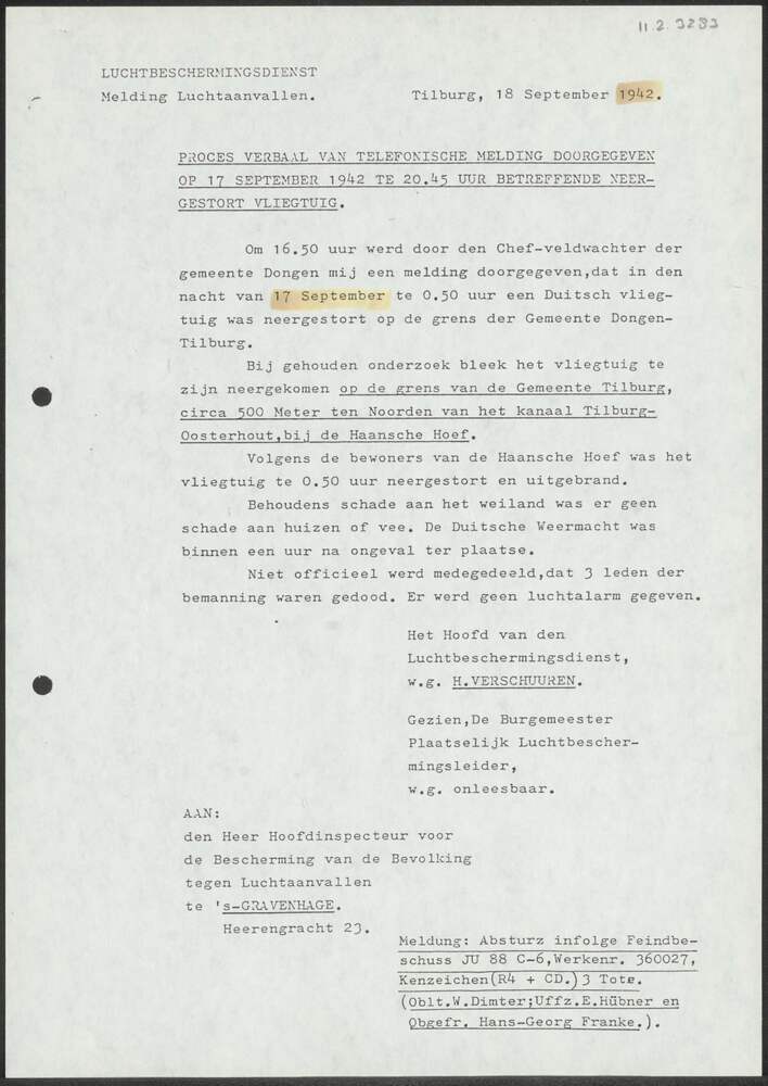 Proces-verbaal Luchtbeschermingsdienst Tilburg 18 se...