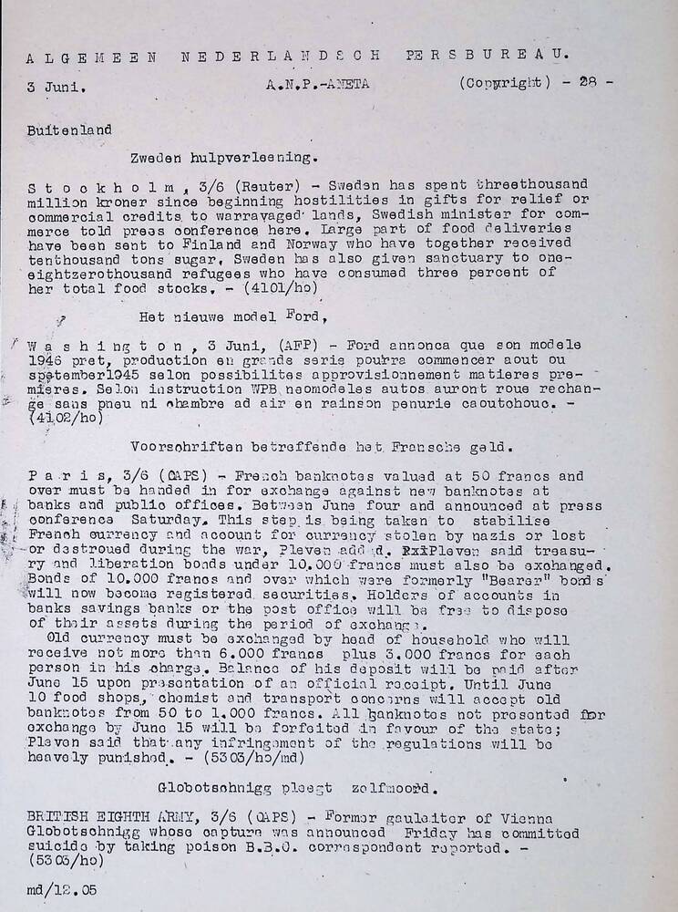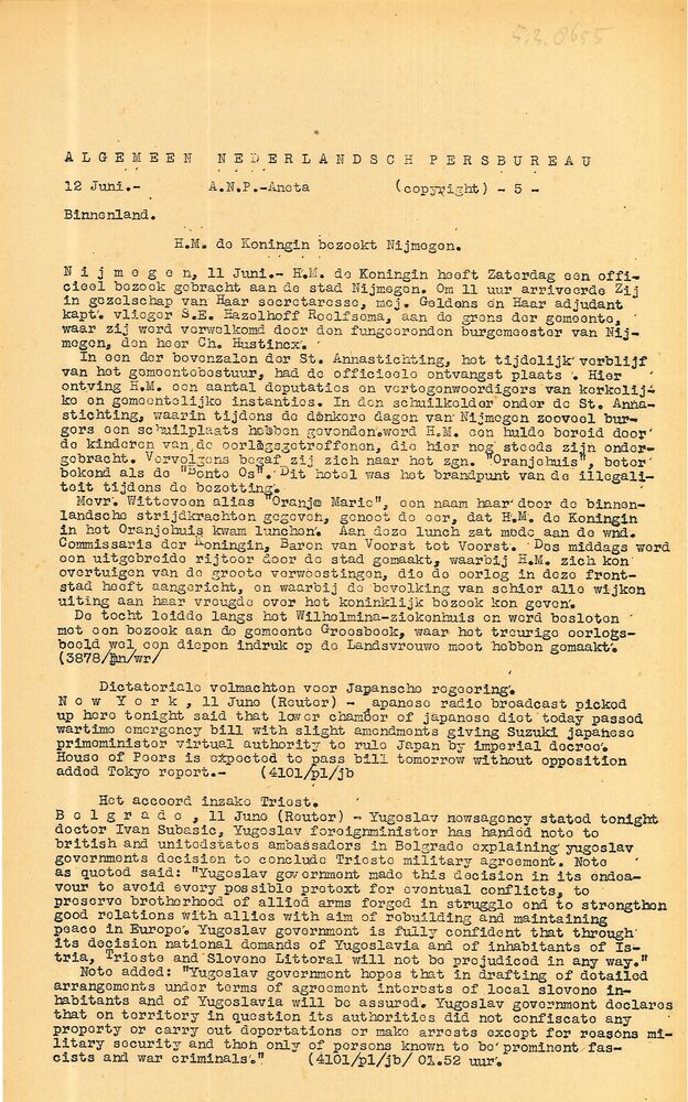 Vel: Algemeen Nederlandsch Persbureau, mededelingen,...