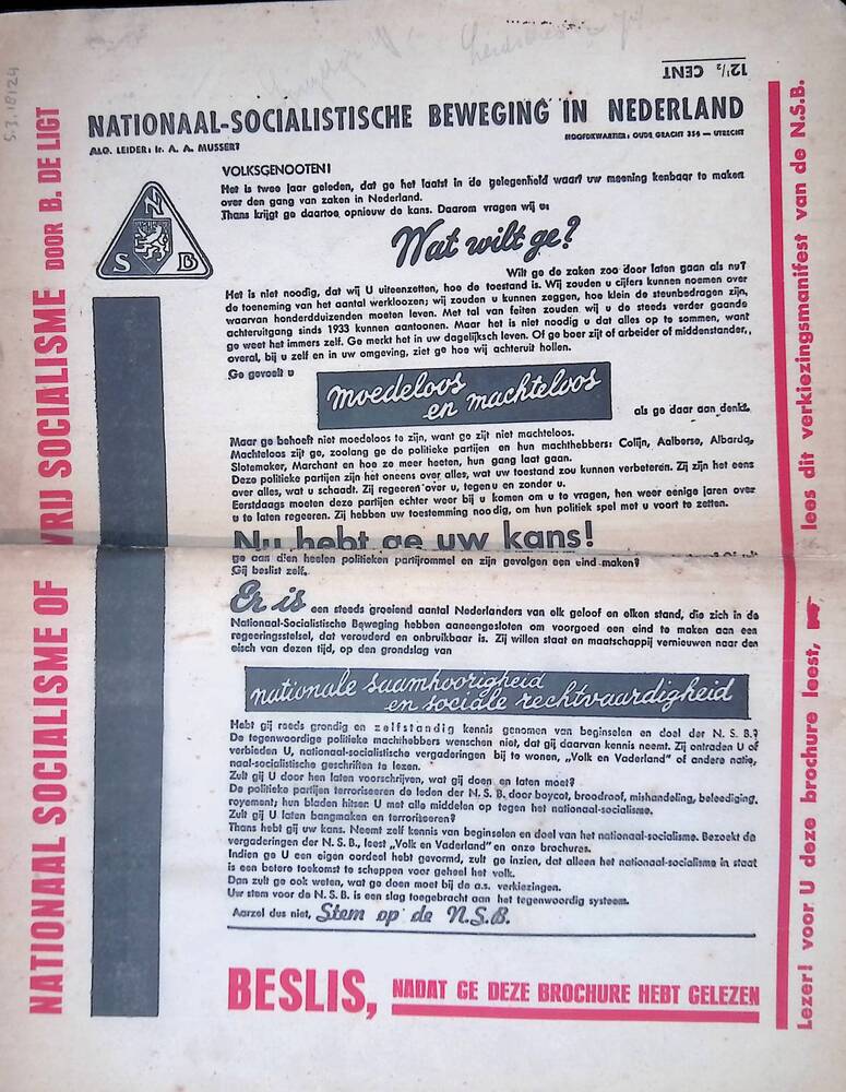 Pamflet: waarschijnlijk deel van de Wervelwind, "Ong...