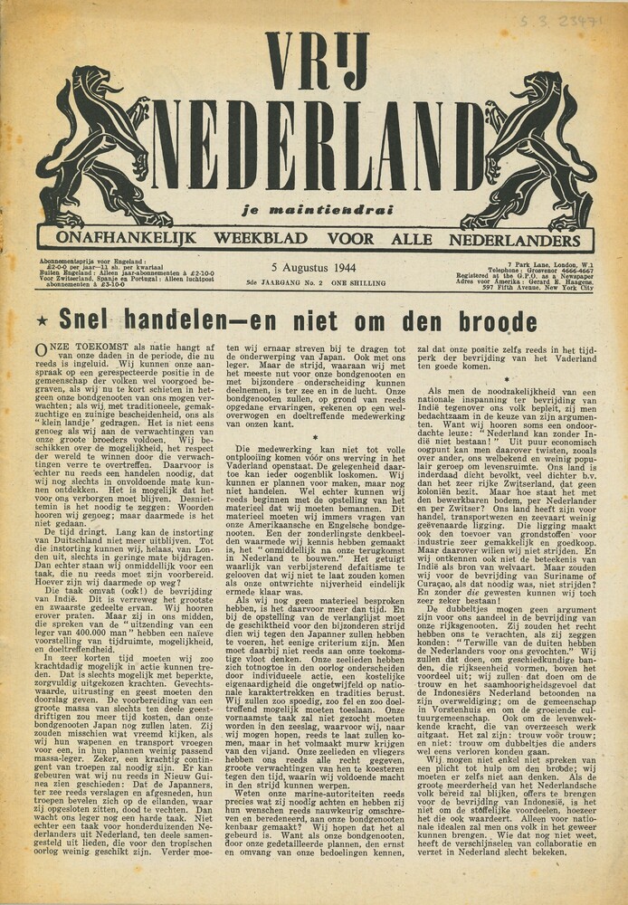Vrij Nederland, gedrukt te Londen, 5de jaarg. No 2, ...