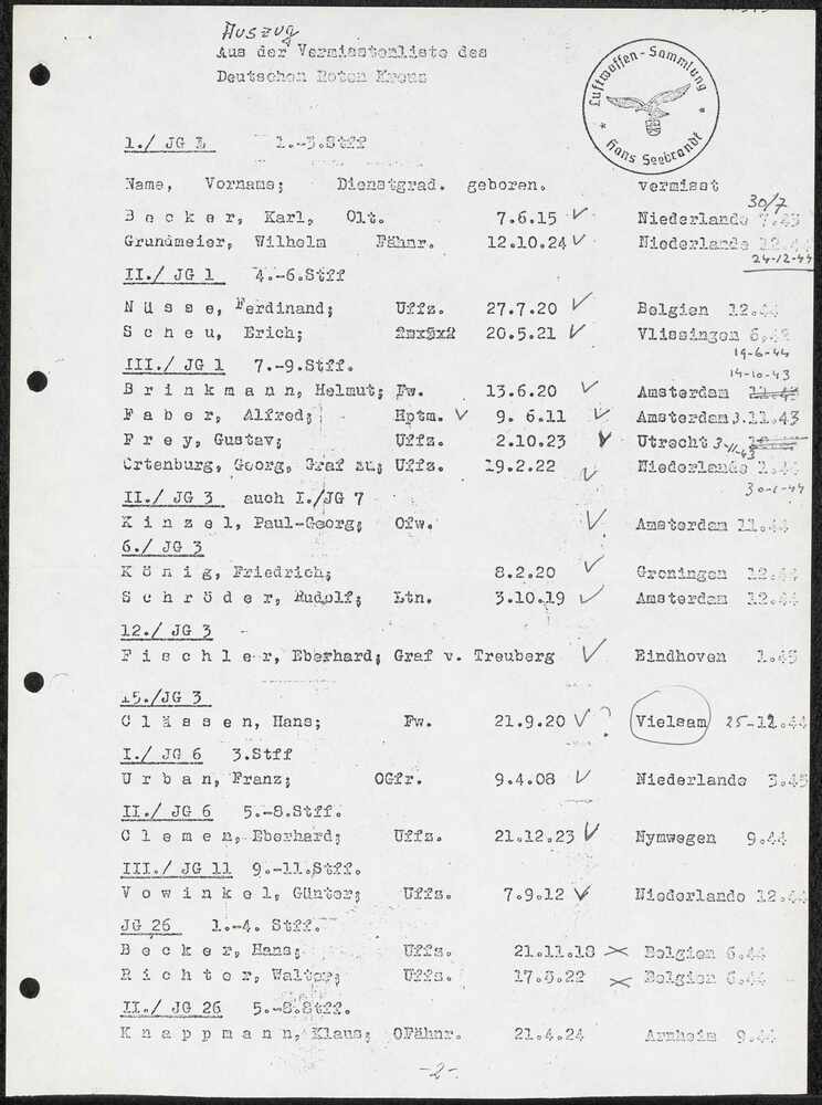 Auszug aus der Vermisstenliste des Deutschen Roten K...