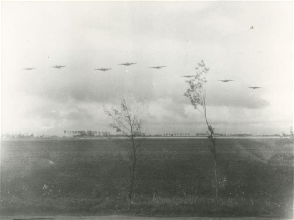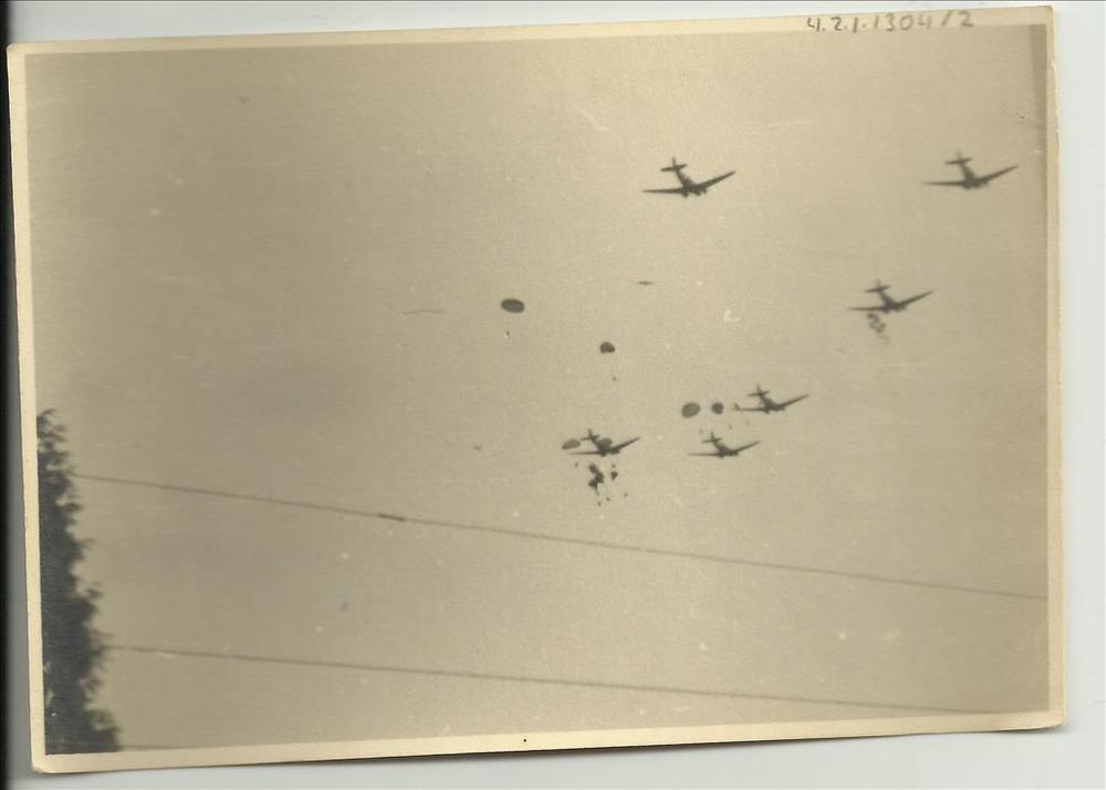zes C-47's, Groesbeek, eerste parachutisten springen
