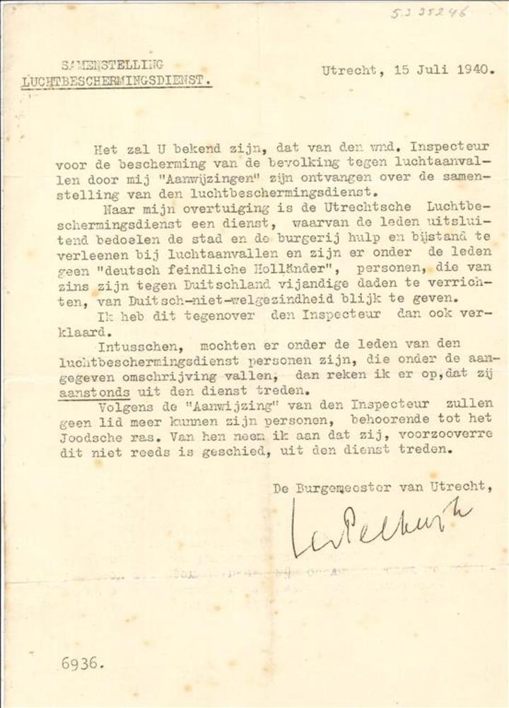 Brief van de burgemeester van Utrecht betreffende de...