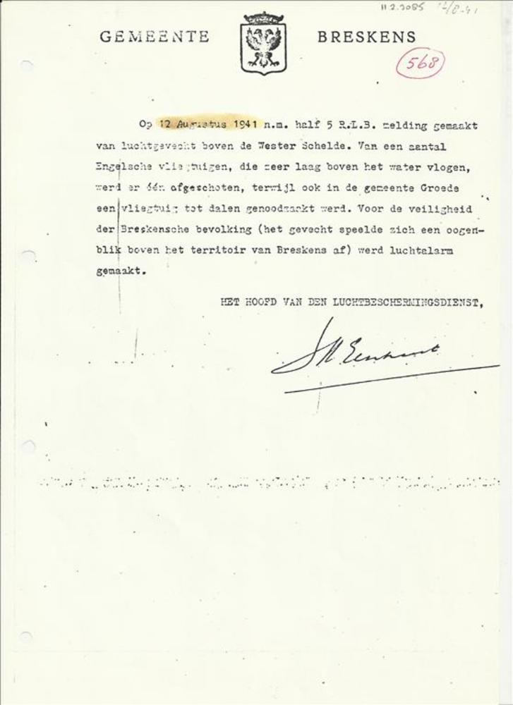 Rapport van de Gemeente Breskens inzake Luchtgevecht...