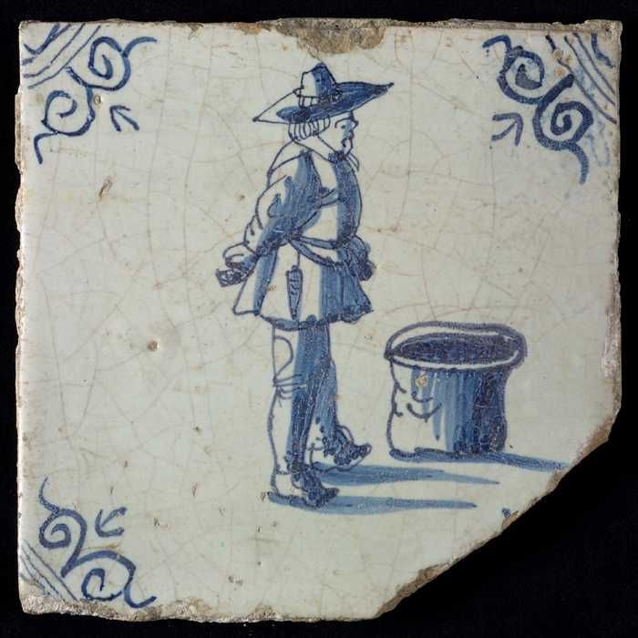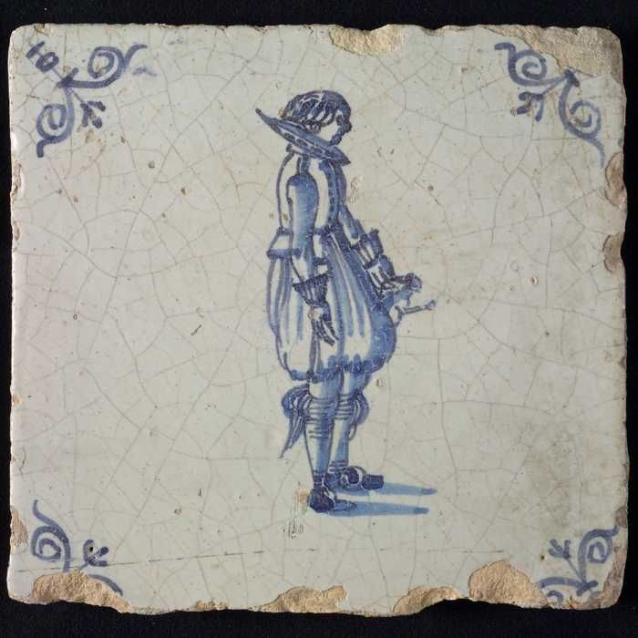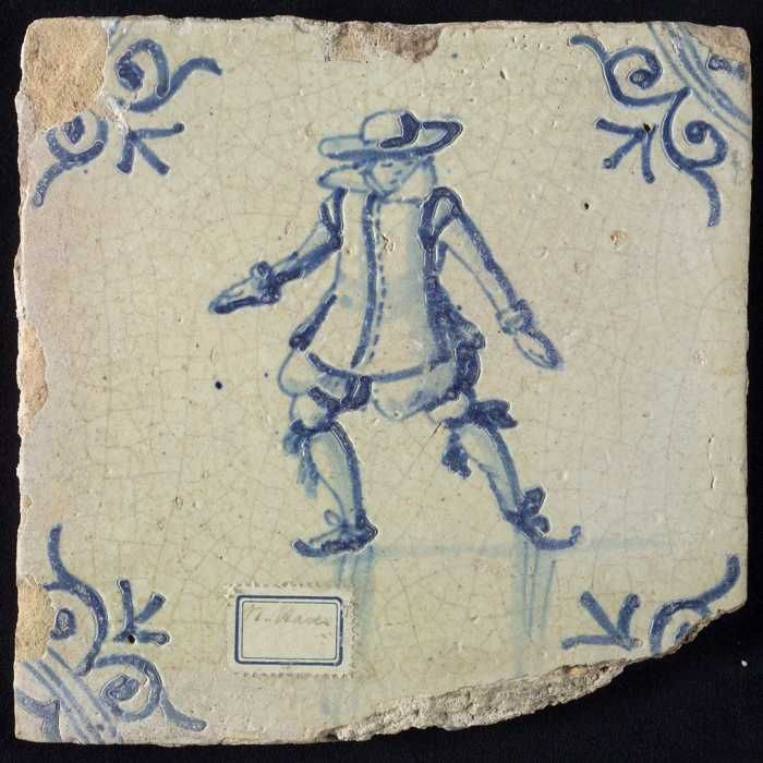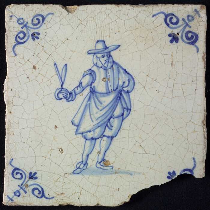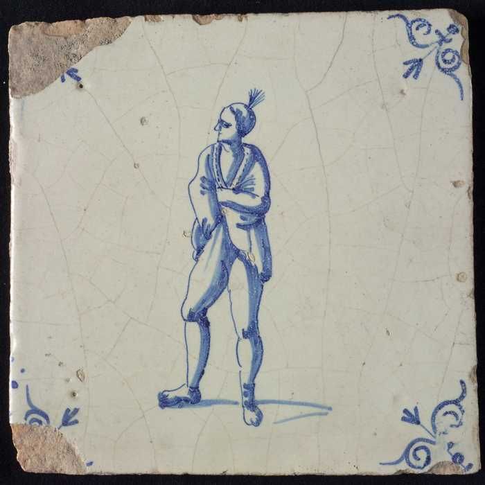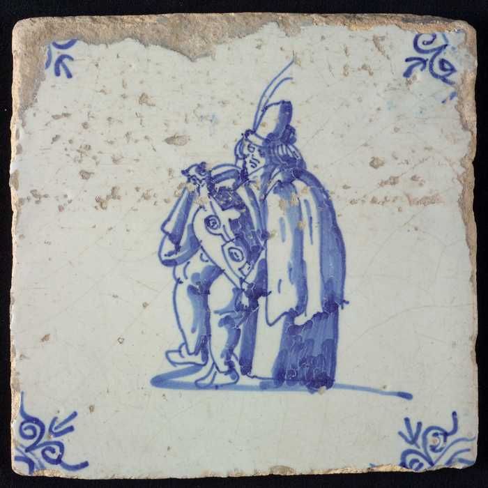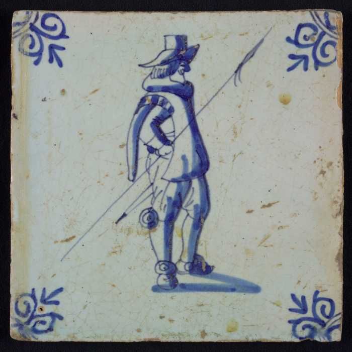 Figuurtegel, blauw, soldaat, piekenier, hoekmotief o...