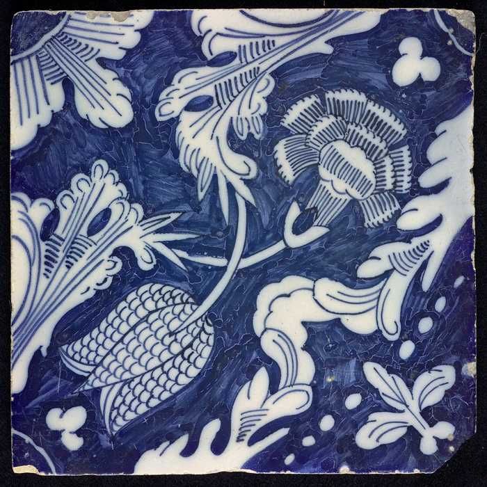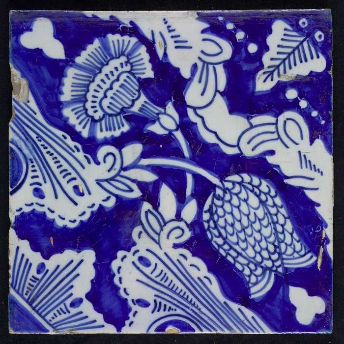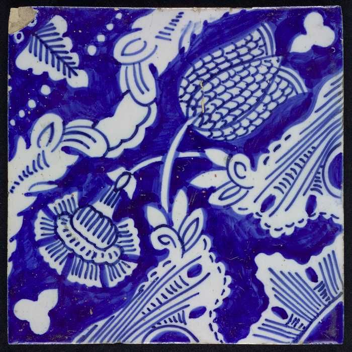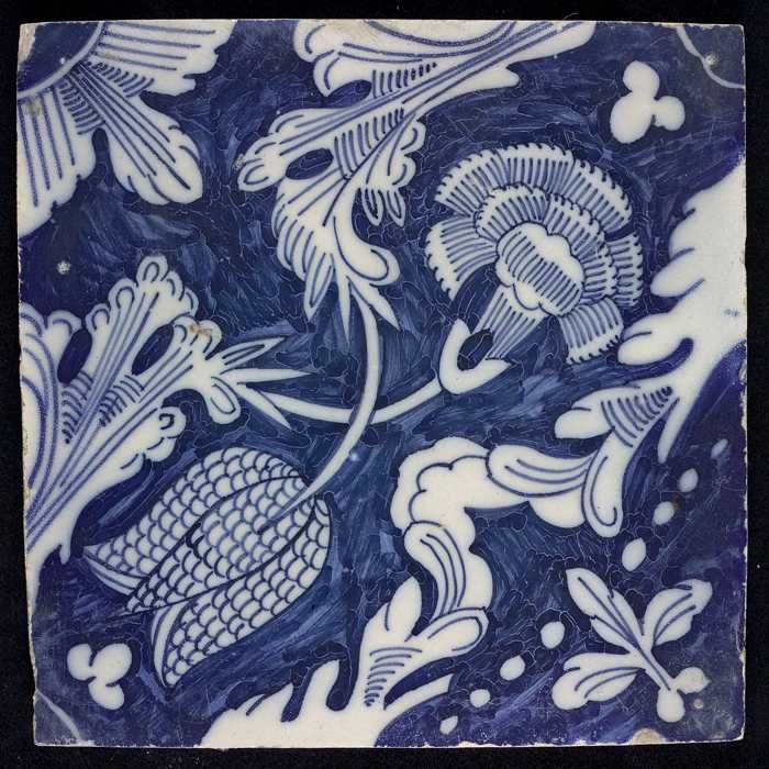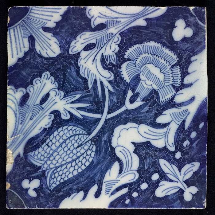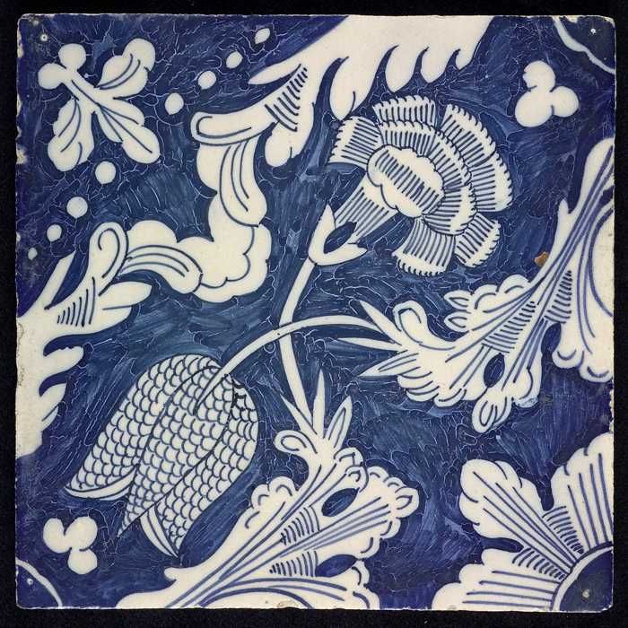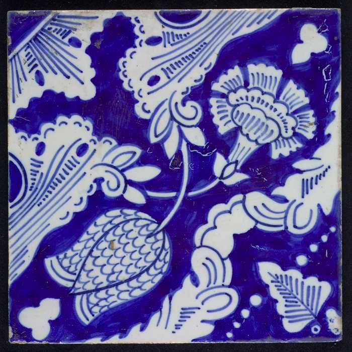 Ornamenttegel, kievitsbloem en anjer, hoekmotief kwa...
