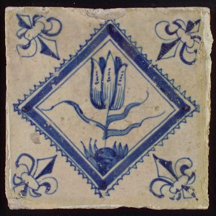Tegel, tulp op grondje binnen een gekarteld kwadraat...