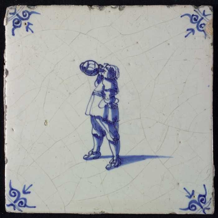 Figuurtegel, man drinkend uit een kruik, hoekmotief ...