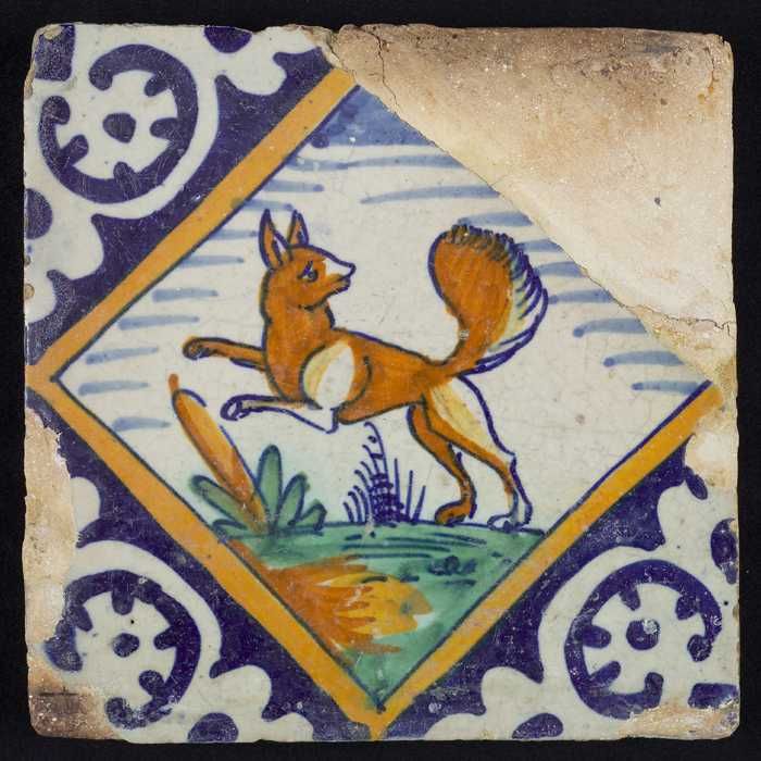 Dierentegel, springende vos op grondje, palmethoek