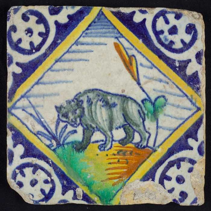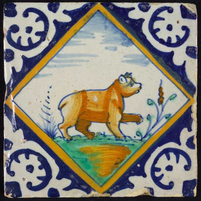 Dierentegel, springende beer, hoekmotief ossenkop