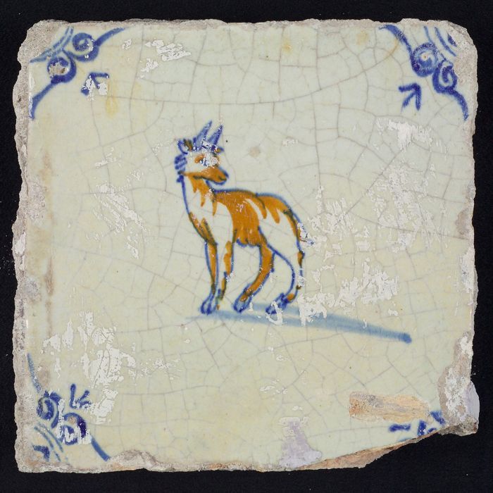 Dierentegel, zittende vos, hoekmotief ossenkop