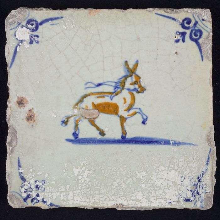 Dierentegel, dravende ezel, hoekmotief ossenkop