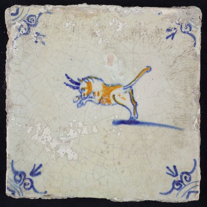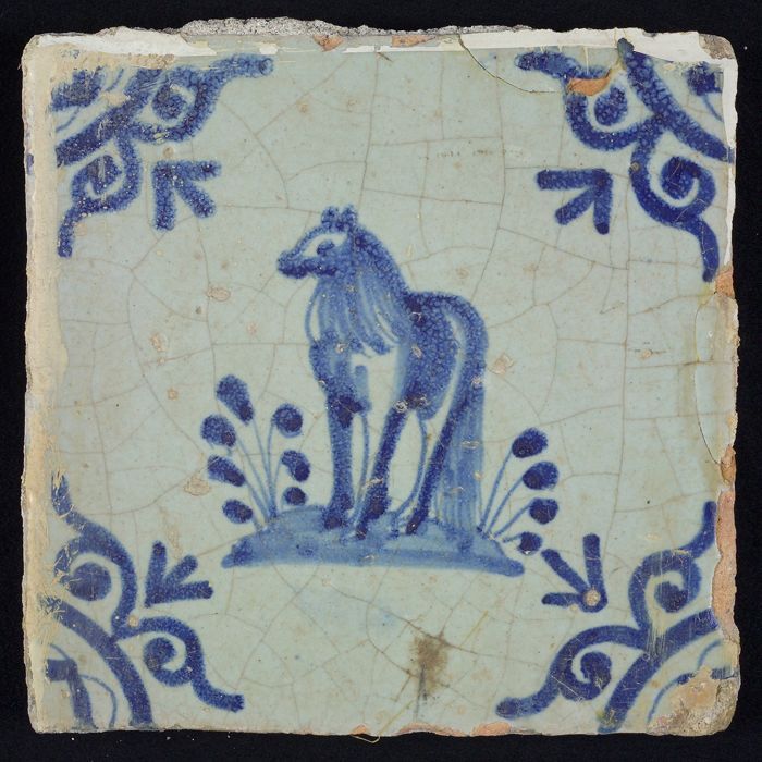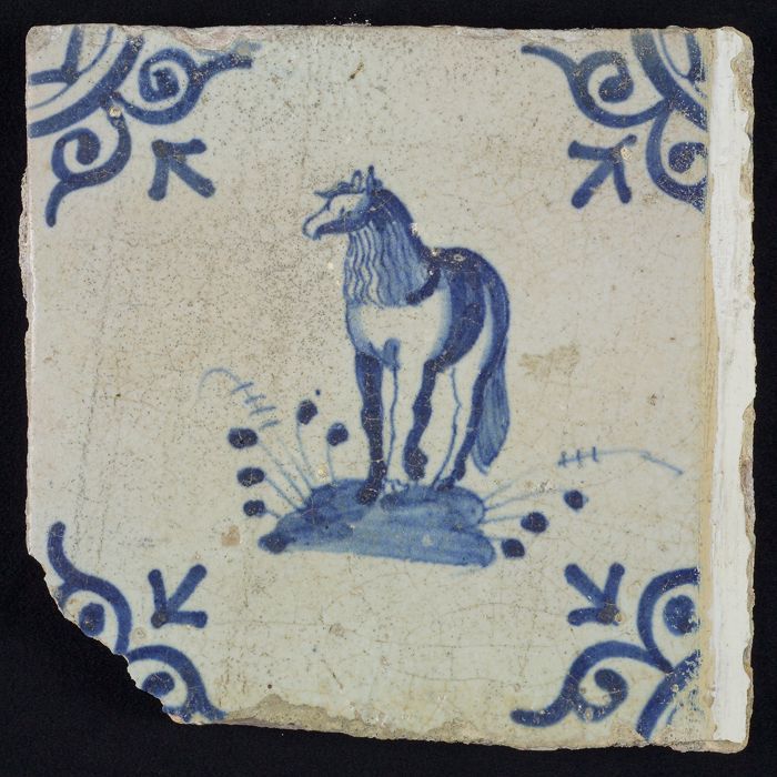 Dierentegel, paard naar links, hoekmotief grote osse...