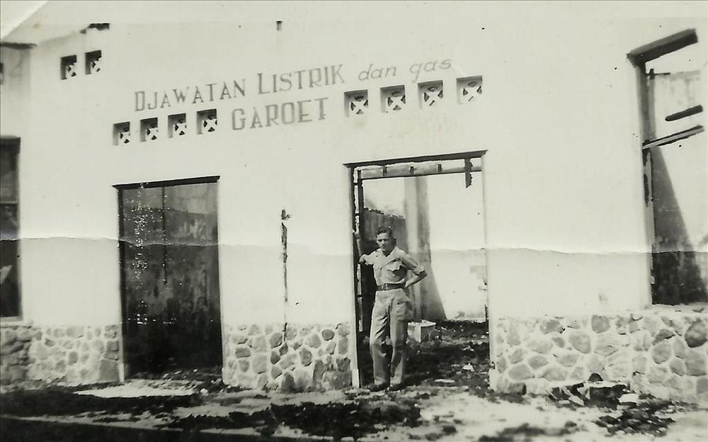 Nederlands Indië; uitgebrand gebouw, militair