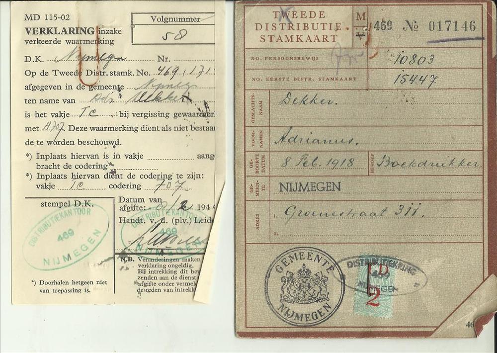 Tweede Distributiestamkaart van : Dekker, Adrianus