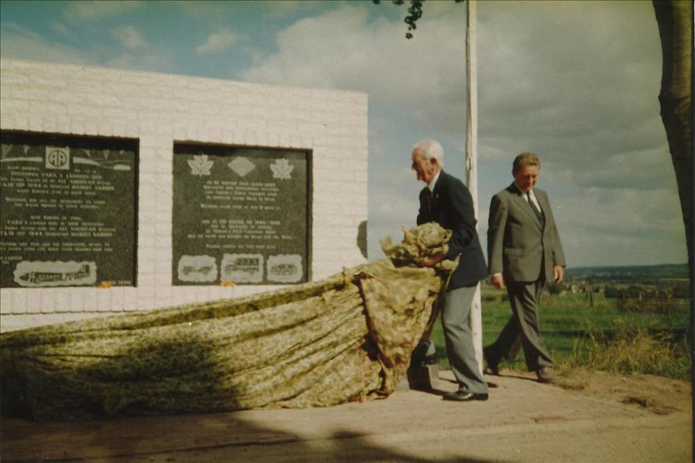 veteraan na onthulling monument Klein Amerika