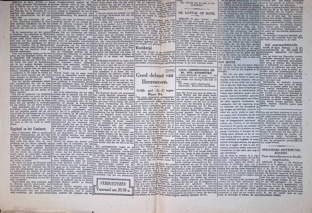 De Courant , Het Nieuws van den Dag, 27 april 1942