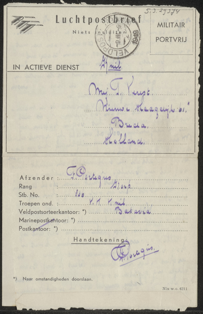 Brief van F Portigus aan T. Verest te Breda
